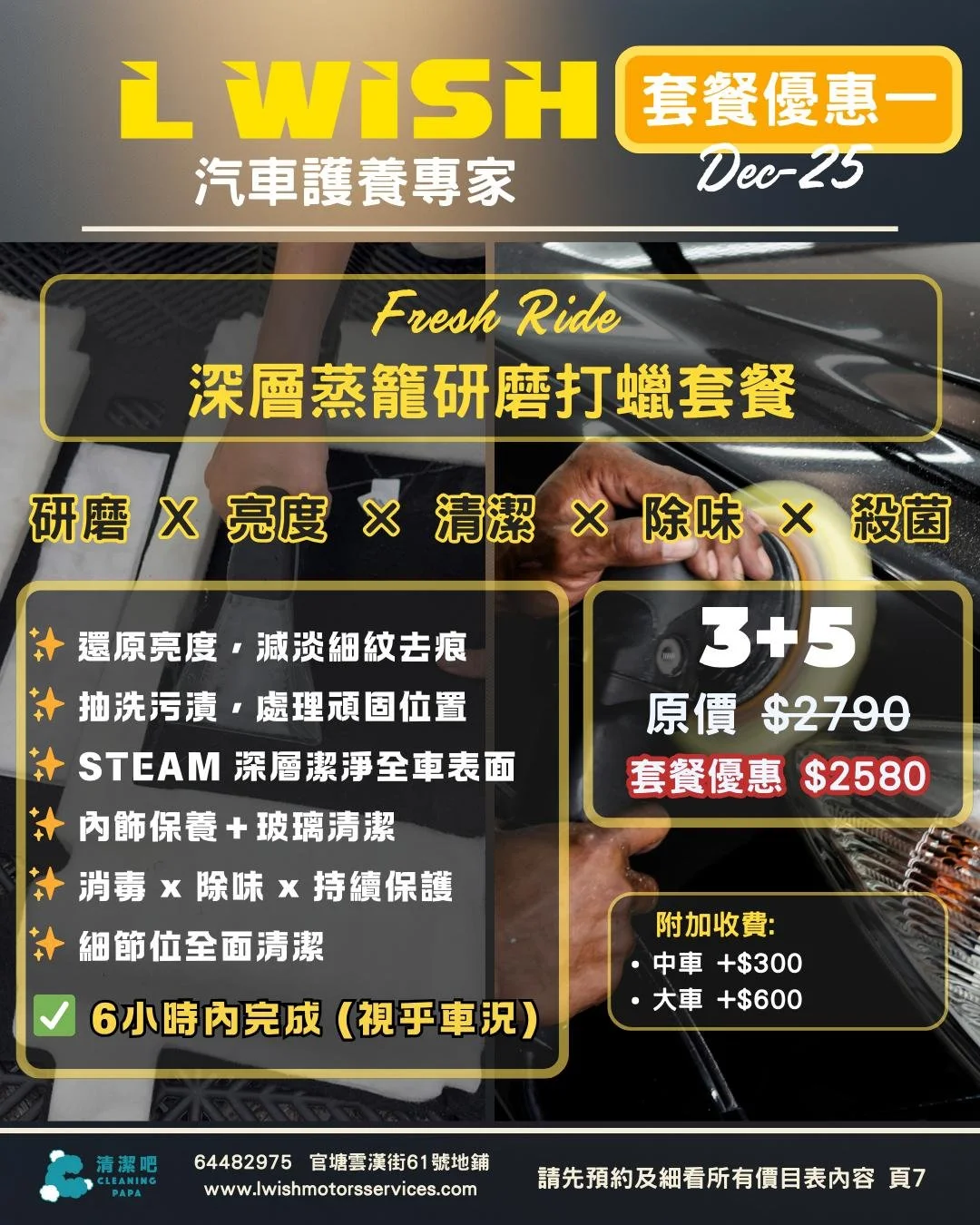 HKCleaningPapa以提供專業及高品質汽車清潔服務見稱,為了讓客人可以更好地保養自己的車輛,我們特別以超值的車廂深層清潔價錢提供不同的車廂清潔套餐予客人。我們的套餐包括基本清潔、深度清潔和豪華清潔等多種選擇,以滿足不同客戶的需求,車廂清潔價錢低至$368 起,只需要付出優惠的價錢便可以讓車廂煥然一新。