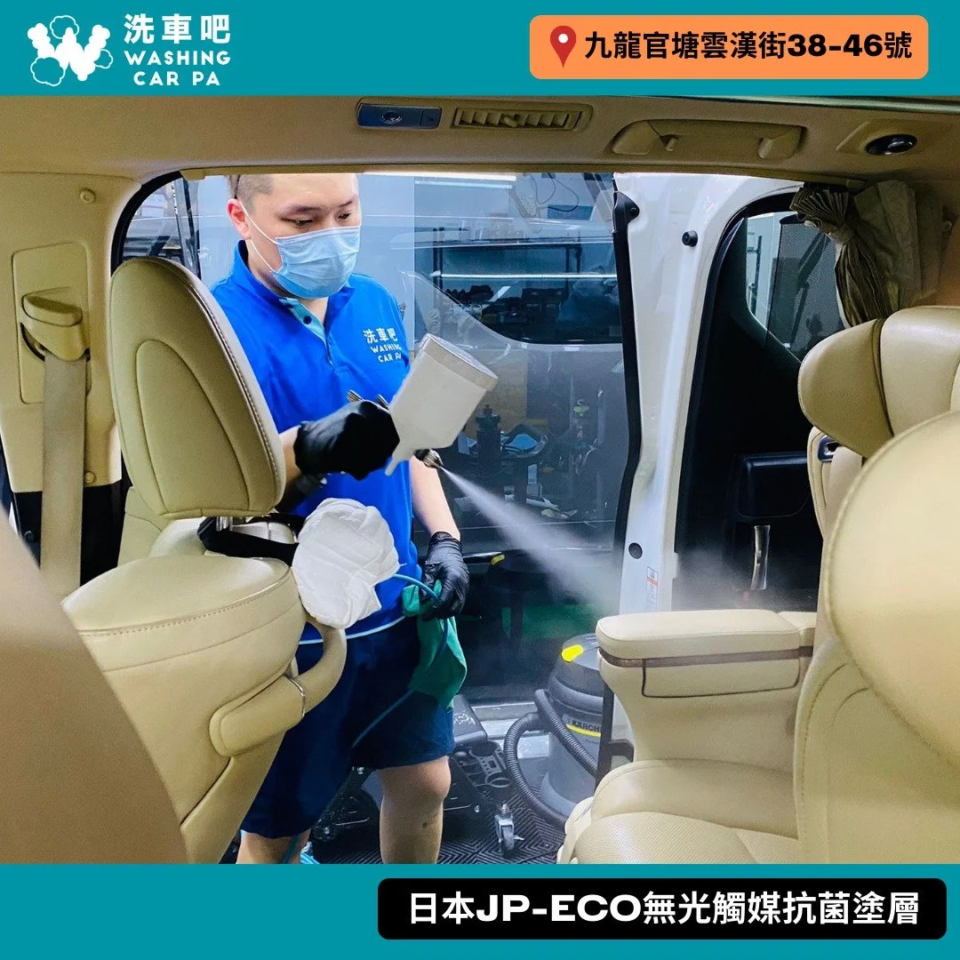 我們使用專業醫療級物料作抗菌護理,當中使用日本進口的光觸媒作為塗層,實驗證實該塗層完全對生物無害,並且無色無味,因此施工後並不會改變車內的配件等等的顏色之餘,也不會對人體或寵物有害。當施工後,細菌及病毒難以於塗層表面生存,從而發揮抗菌作用。